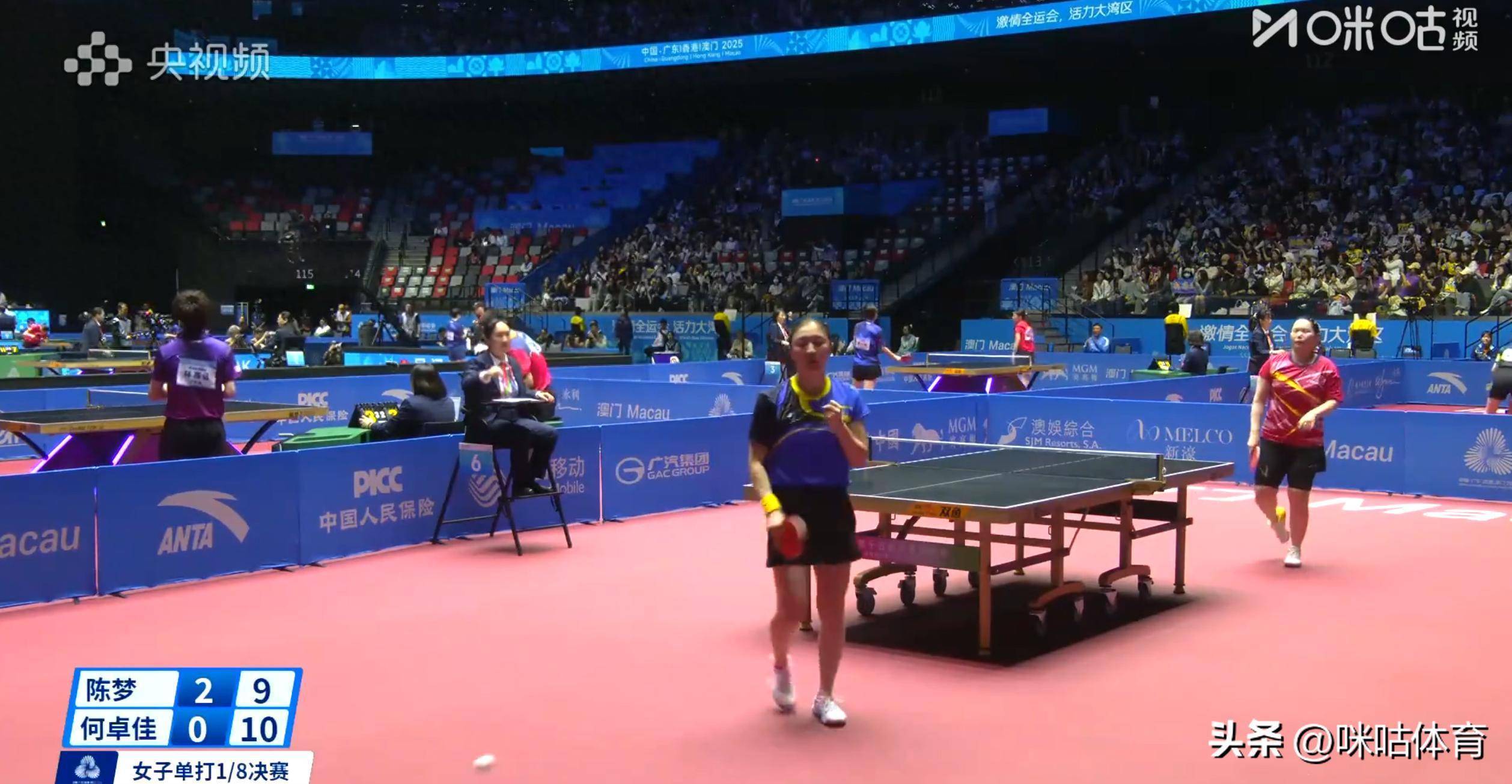 11月12日,2025全运会乒乓球女单1/8决赛上演焦点对决,奥运冠军陈梦以4-0完胜河北选手何卓佳,携此前1/16决赛对孙铭阳的零封战绩,晋级八强。